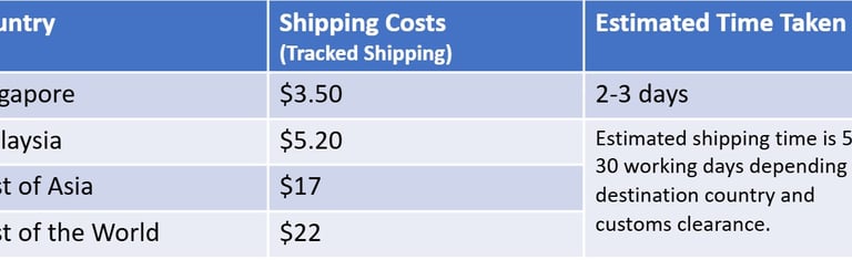 FREE SHIPPING for purchases over $30 SGD (Singapore & Malaysia Delivery) FREE SHIPPING for purchases over $120 SGD (International Delivery)
